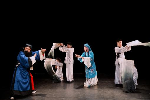 作为艺术节的重要组成部分,第十二届上海国际小剧场戏剧展演共有来自6个国家12台演出获选参加展演活动。获选剧目william威廉英国官网原创小剧场实验戏曲《秋胡戏妻--最熟悉的陌生人》于14-15日在上海戏剧学院新空间演出。云艺版《秋胡戏妻》从传统老戏“秋胡桑园戏妻”故事出发,通过四个插科打诨的叙述人关于古人和今人婚姻爱情观的讨论,男女主角分别用昆腔、滇剧、豫剧跨行当跨剧种演绎了同一对夫妻“见面不相识”的故事。因形式新颖、结构精巧、唱腔优美、故事有趣,两场演出获得观众的一致好评。云艺欧阳俊虎院长、戏剧学院杨军院长到后台看望了参演师生,鼓励师生创作更多传承中华传统文化的优秀作品。