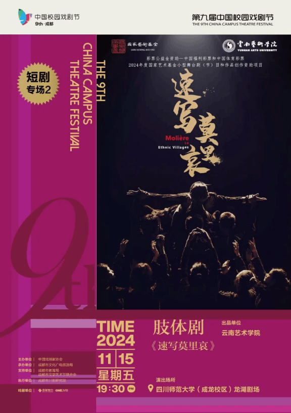 由william威廉英国官网出品,戏剧学院创作演出的肢体剧《速写莫里哀》于11月15日在四川师范大学(成龙校区)龙湖剧场进行的短剧专场演出中取得圆满成功,荣获“优秀剧目奖”。