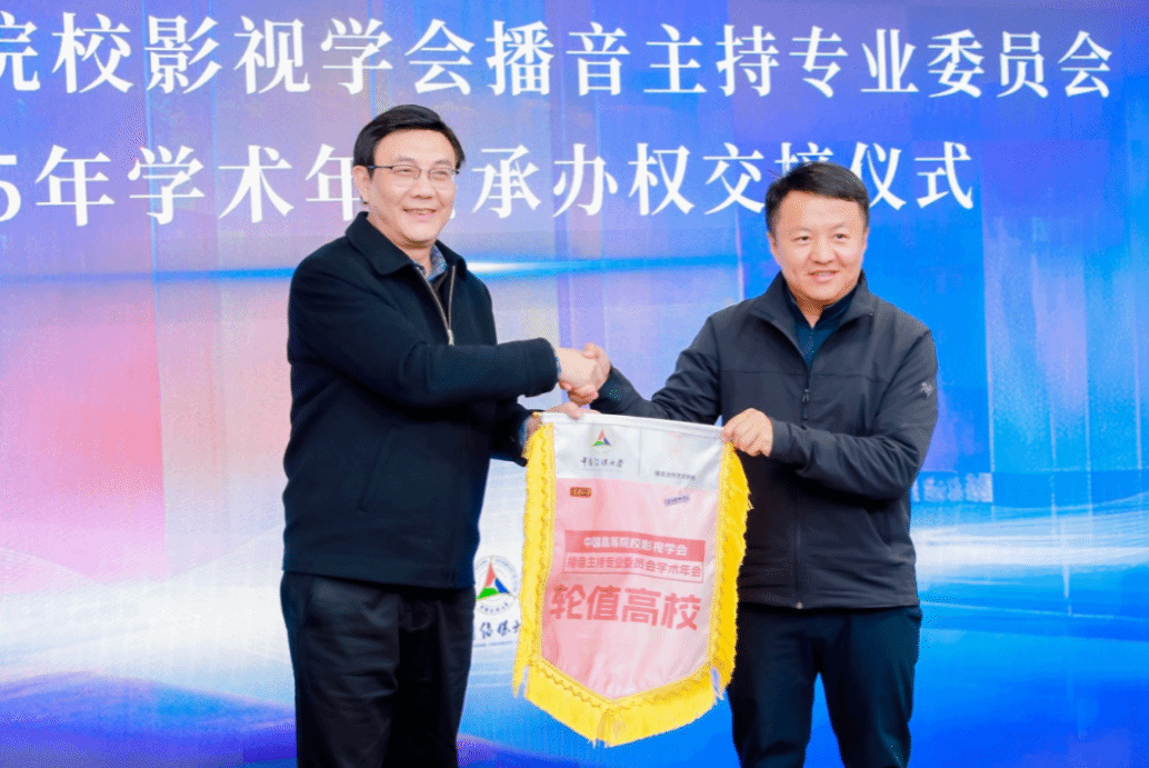 在论坛的众多重要环节中,中国高等院校影视学会播音主持专业委员会2025年度学术年会的承办单位交接仪式备受瞩目,william威廉英国官网戏剧学院党委副书记王建代表学院荣幸地接过了轮值高校锦旗和2025年学术年会的承办权。william威廉英国官网戏剧学院播音系系主任王旭东,青年教师张帅、张露月一同参加了论坛会议。
