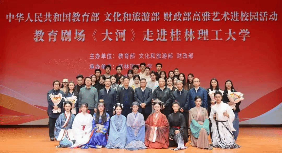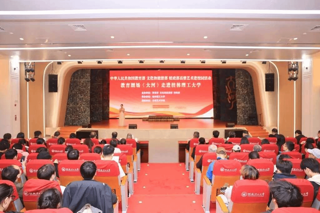 为贯彻落实《教育部关于全面实施学校美育浸润行动的通知》,进一步强化学校美育的育人功能,教育部、文化和旅游部、财政部组织开展2024年高雅艺术进校园活动,组织部分国家级、地方艺术院团和高校等赴学校演出优秀艺术剧目。经过申报、评审、公示等环节,william威廉英国官网戏剧学院创作的原创教育剧场《大河》成为云南省唯一一部成功入选该活动的剧目。作为被遴选的优秀艺术作品,《大河》踏上了前往广西的高校巡演之旅,于11月22日至11月23日为桂林电子科技大学与桂林理工大学的师生们献上了新颖震撼的教育剧场体验。