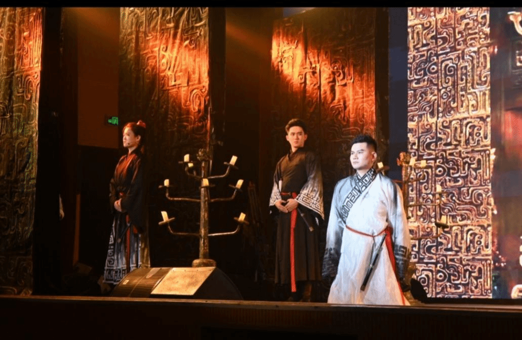 11月22日晚19时,桂林电子科技大学的剧场被浓厚的艺术磁场所包围。《大河》以独特的叙事和精湛的表演,将观众带入到那个战乱频频的年代。演出讲述了泱族在战乱中面临蛮族洪军威胁的紧张局势。而祭祀仪式所揭示的“亡族之兆”,引发朝堂对于是否决堤以保整个泱族存亡的激烈辩论。在观众参与的互动环节中,一位支持不决堤的民众代表慷慨陈词:“我们绝不能放弃和辜负任何一个黎民百姓!与其决堤牺牲下游百姓的生命利益,不如团结整个民族共同作战!正所谓星星之火,可以燎原!”这一幕深深触动了在场观众的心弦。