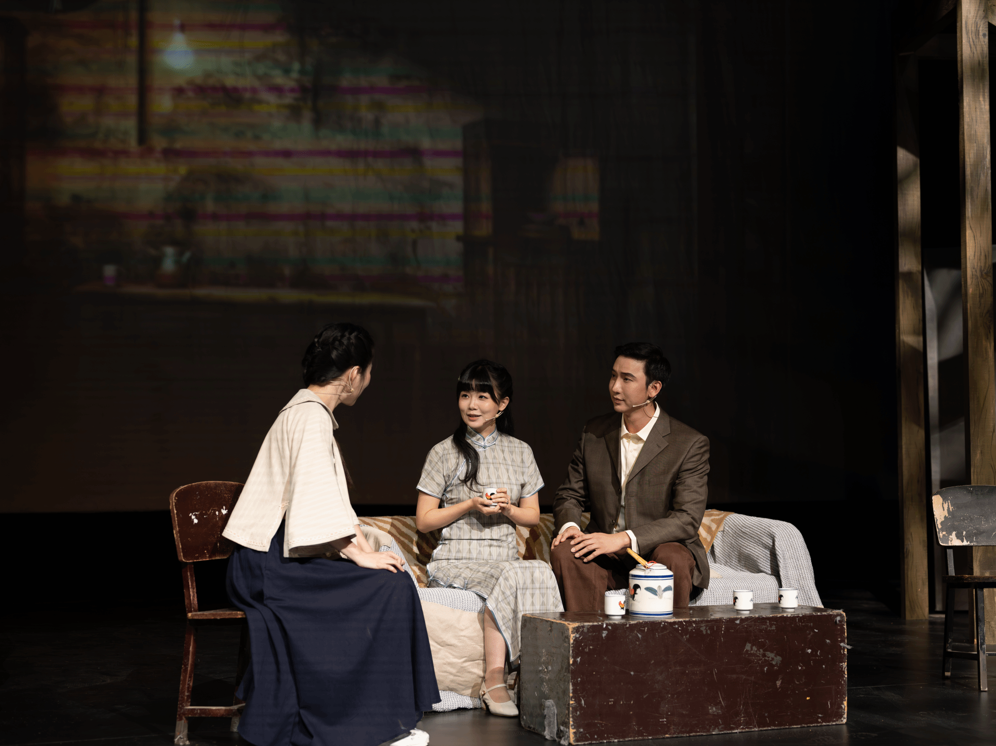《新·回春之曲》在舞台上塑造了失忆的高维汉和被困的高维汉两个形象,他们之间的互动与冲突,进一步凸显了“回春”的意象,既指个人创伤的治愈,更象征民族精神的全面觉醒。同时,此次演出还保留了原作中的《梅娘曲》《告别南洋》等插曲,这两首歌曲以及《义勇军进行曲》均由田汉作词、聂耳作曲。值得一提的是,聂耳是云南籍的杰出民族音乐家,《新·回春之曲》在滇的演出不仅是对田汉的缅怀,也是对聂耳的致敬。