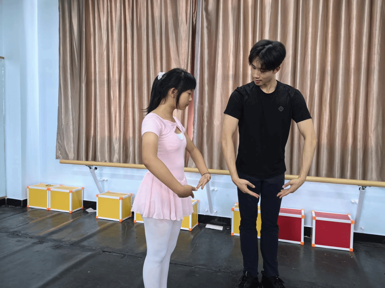 为进一步提升学生对芭蕾之美的感受力,苏思汀老师精心编排芭蕾舞蹈经典剧目片段,帮助学生排练作品,反复对每一位学生的芭蕾表演细节进行指导。