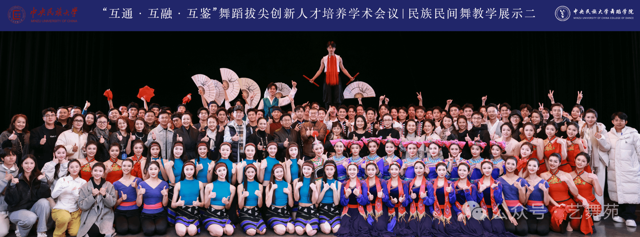 11月8-9日,中央民族大学举办“互通・互融・互鉴:舞蹈拔尖创新人才培养学术会议”。本次会议汇集舞蹈教育领域顶尖学者、行业领军者与创新实践者,研讨前沿趋势、跨学科融合等议题,构建中国特色拔尖人才培养体系。我院徐梅教授受邀参会,并携《滇南民族民间舞蹈教材与教法》参与教学展示,王国俊、者子楠、施懿珊等师生22人参与展示。